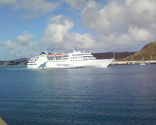 Durante o mês de Agosto o ferry Lobo Marinho, com já faz á alguns anos, reforça as ligaçoes entre a Madeira e o Porto Santo, fazendo duas ligações diarias ás quartas , sextas e domingos. Hoje foi a 1º quarta feira que o fez. Chegou ao Porto Santo as 10.30 h, descarregou, carregou e saíu ás 11.30. Fiz algumas fotos da entrada no Porto, rotação do Navio e saída do mesmo..