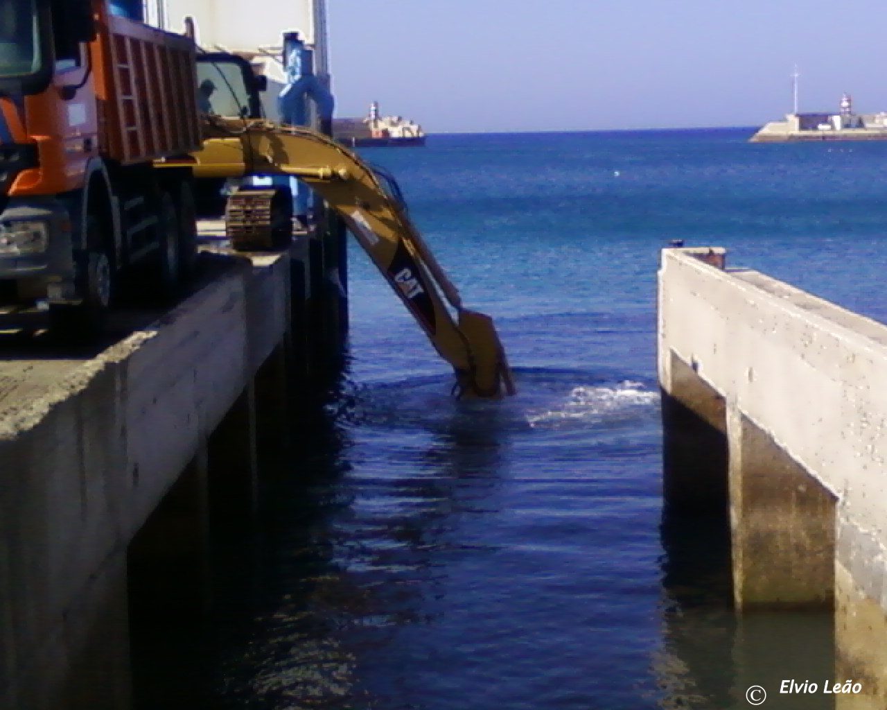 Foi efectuada, hoje de manhã, uma pequena dragagem na cais onde opera o travel-lift pois o assoreamento verificado naquele local, dificultava a entrada a iates que devido á profundidade do patitlhão tocavam no fundo, principalmente com a baixa-mar.