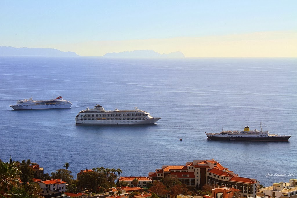 De salientar a primeira escala do "Funchal". bem conhecido e querido dos madeirenses , com as cores da Portuscale Cuises .