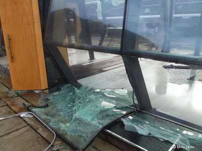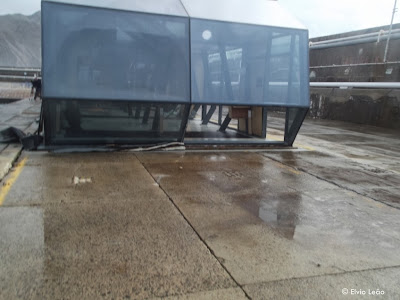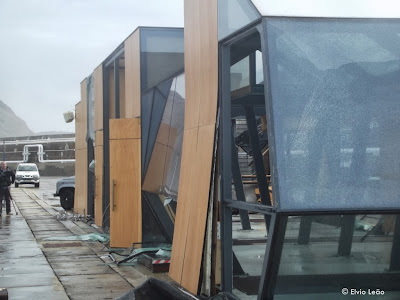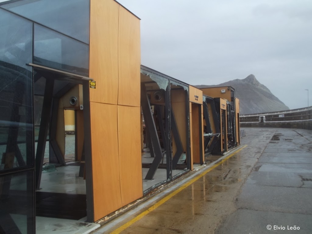 A ondulação muito forte que se fez sentir durante a noite de ontem destruiu quase parcialmente a gare maritima da PSL . Ondas com varias toneladas galgaram o muro de cortina e caíram em cima do cais, levando tudo o que apanham pela frente. Uma cabine de uma empresa de aluguer de automóveis e venda de bilhetes para autocarros simplesmente desapareceu, a algumas varandas torceram ou desapareceram.