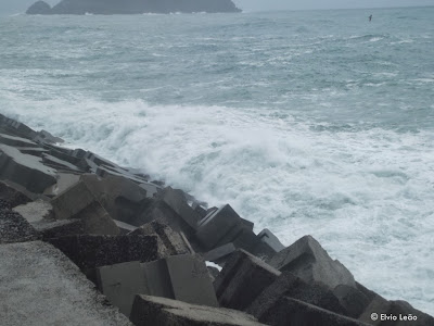 Hoje o tempo melhorou significativamente, e, embora a ondulação continue forte o vento sopra com pouca intensidade pelo que a mesma devera decrescer ao longo das próximas horas.