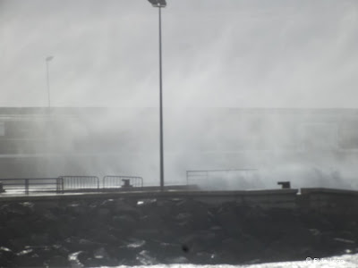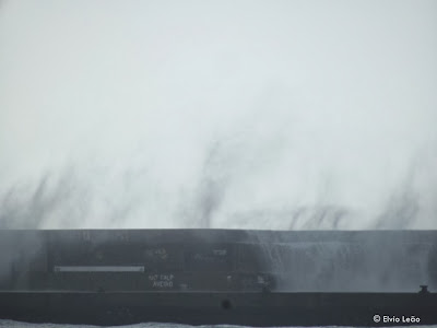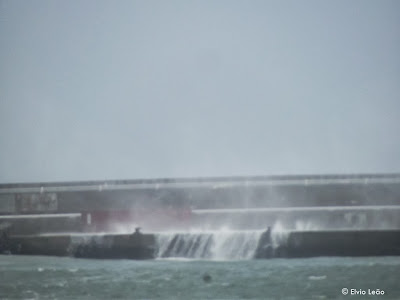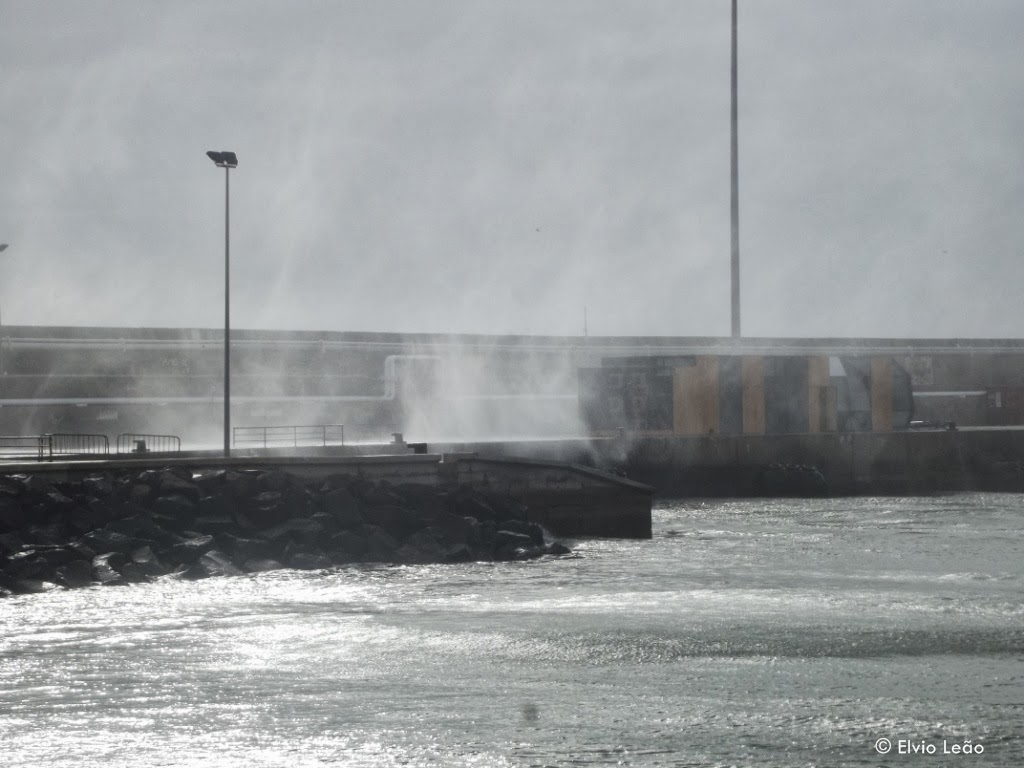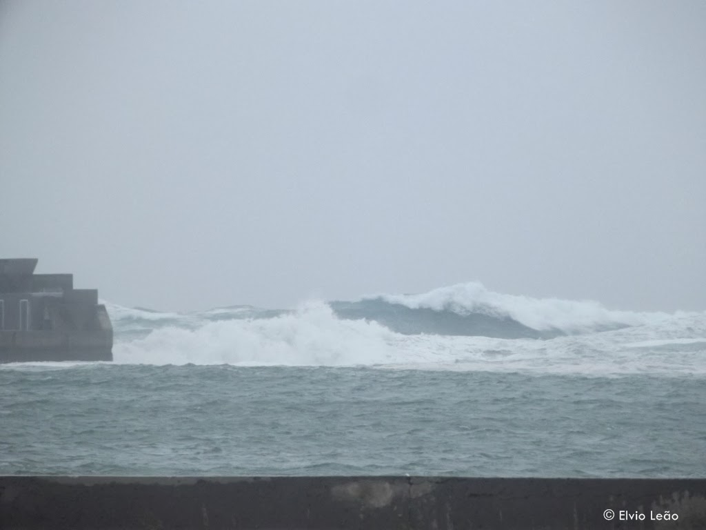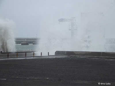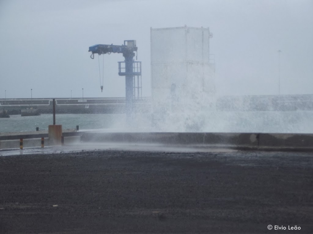Vento forte de sul e ondulação a rondar os 5 metros ja provocaram alguns estragos nomeadamente na gare marítima da Porto Santo Line, onde as ondas galgaram o muro de cortina e partiram as portas da gare.
