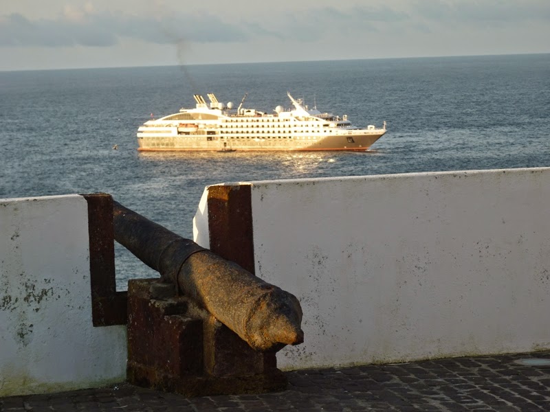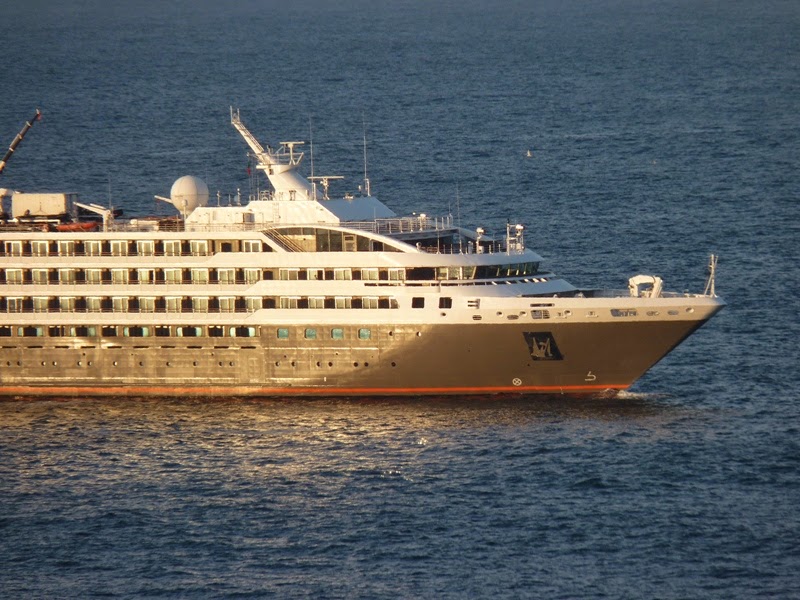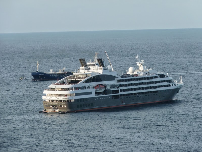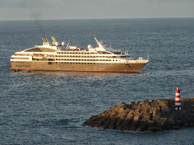 Navio " Le Boreal" fundeado em Vila do Porto , Açores, de onde sai rumo ao arquipélago da Madeira. Este navio estará no Porto Santo na próxima sexta-feira.