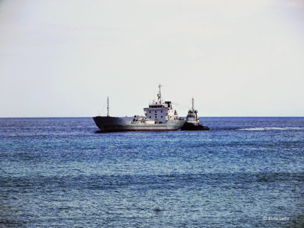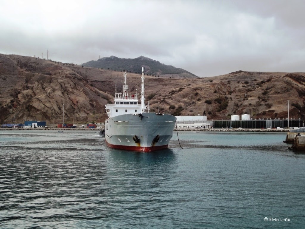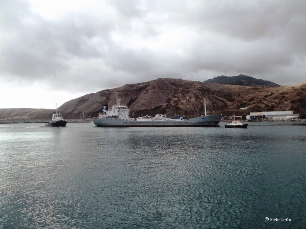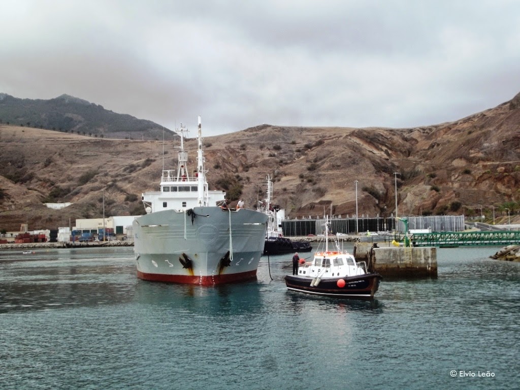 Alguns camiões aguardam hora de embarque no ferry para seguir para o Funchal, depois de terem feito chegar aos seus destinatarios as mercadorias que transportaram na viagem de manha desde o Funchal, o que demonstra bem a importancia das ligaçoes ferry no transporte de , não só passageiros , mas tambem mercadorias.