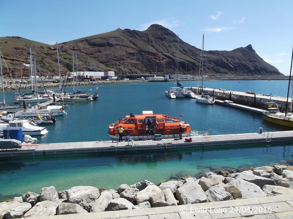 Como é normal com navios destas dimensões o MS Amadea ficou fundeado, tendo o desembarque dos passageiros sido feito com recurso ás baleeiras do navio que atracaram no pontão da marina do Porto Santo,
